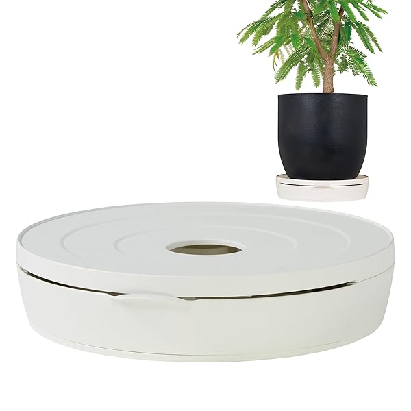 ポットキーパー 観葉植物の排水を簡単に捨てれる鉢皿 床置き用 Φ29cm 受皿 許水量1.2L 中〜大鉢用 8号 10号 12号 ホワイト 床に排水がこぼれづらい機能付き 高さ6.5cm 受け皿