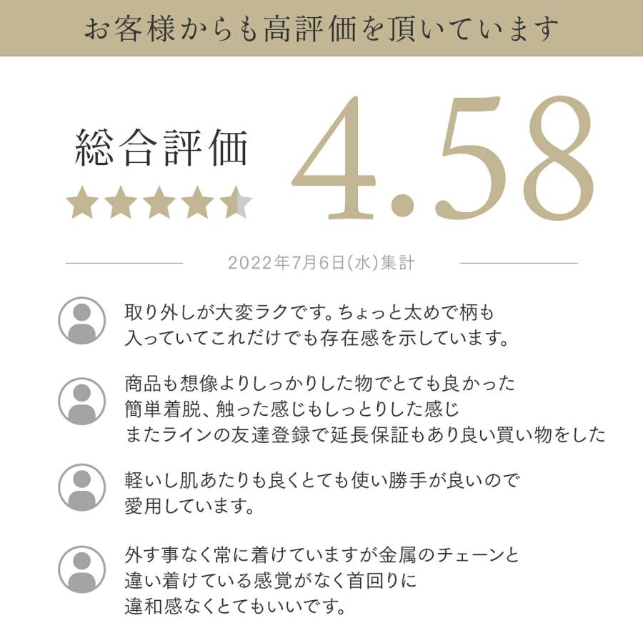金具はサージカルステンレス製ですのでサビや汚れの心配不要、アレルギーを起こしにくい素材ですので敏感肌の方でも安心してお使いいただけます。