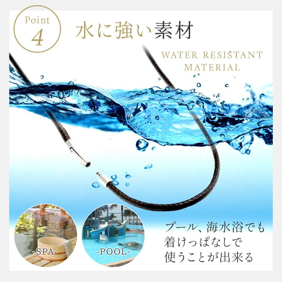 紐も金具も耐水性ですので濡れても大丈夫です。お風呂でもプールでも着けたままで入っていただけます。