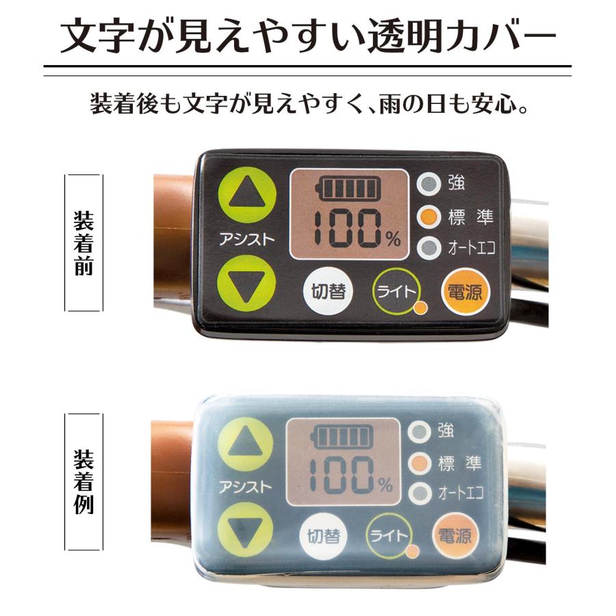 \伸縮する素材で幅広いメーカーに対応!/・電動自転車のスイッチカバー・手元スイッチを雨や汚れから守ります◎・文字の見えやすい透明カバー!・ぐ〜と伸びてカンタン装着♪※種類・形状によっては取り付けできない場合があります。【商品サイズ】約3.9×6.8×2.1cm【材質】シリコーン【適応リモコンサイズ】約縦3.5〜5.5×横6〜8×高さ1.5〜2.5cm電動自転車/アシスト付き自転車/スイッチカバー/シリコンカバー/シリコンケース/汚れ防止/破損防止/自転車
