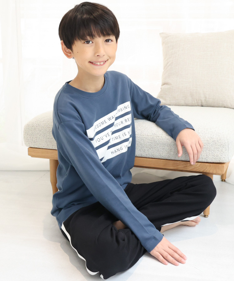 パジャマ キッズ ジュニア 長袖 男の子 女の子 綿100% 秋 春 スムース素材 ロゴ ルームウェア 子供 男児 女児 かわいい 小学生 z8-54101 圧縮