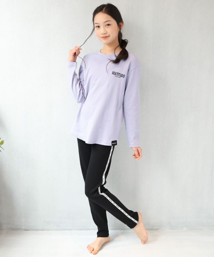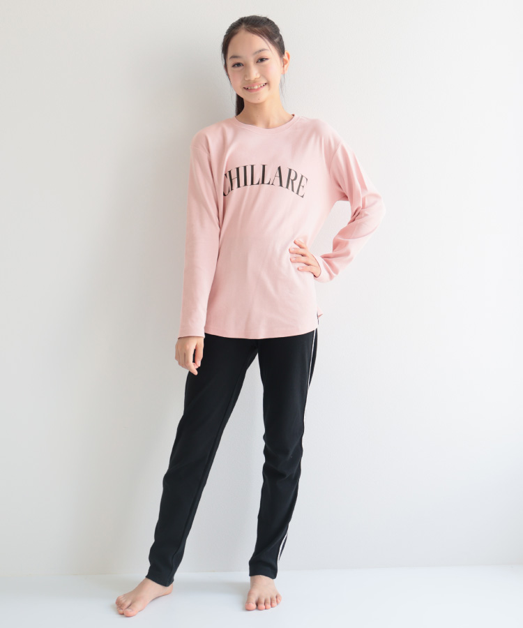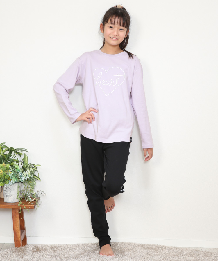 パジャマ キッズ ジュニア 長袖 女の子 綿100% かぶり ライン 春 秋 スムース プリント ルームウェア 子供 女児 かわいい 小学生 z8-54102 圧縮