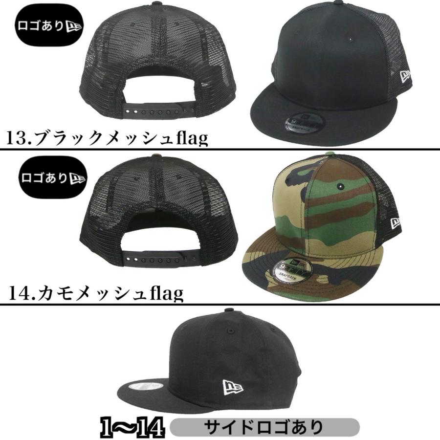 ■商品名/NEWERA 9FIFTY CAP【NE400/NE403/NE407/NE4030/NE4020】■サイズ/ONESIZE(ワンサイズ)■仕様/後頭部部分(スナップバック)でサイズ調整が可能■素材/ポリエステル、コットン■寸法/頭まわり約57.7〜61.5cmツバ約7cm高さ約11.5cm(メッシュタイプのみ深さ約11cm)■カラー1〜14番【flagロゴ有り◎】15〜38番【flagロゴ無し×】