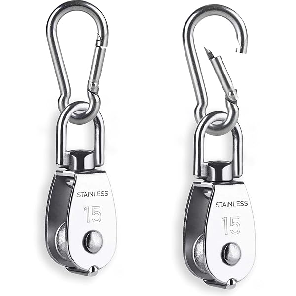 滑車 カラビナ付き ステンレス製 小型ローププーリー 貨物輸送 2セット (M15)