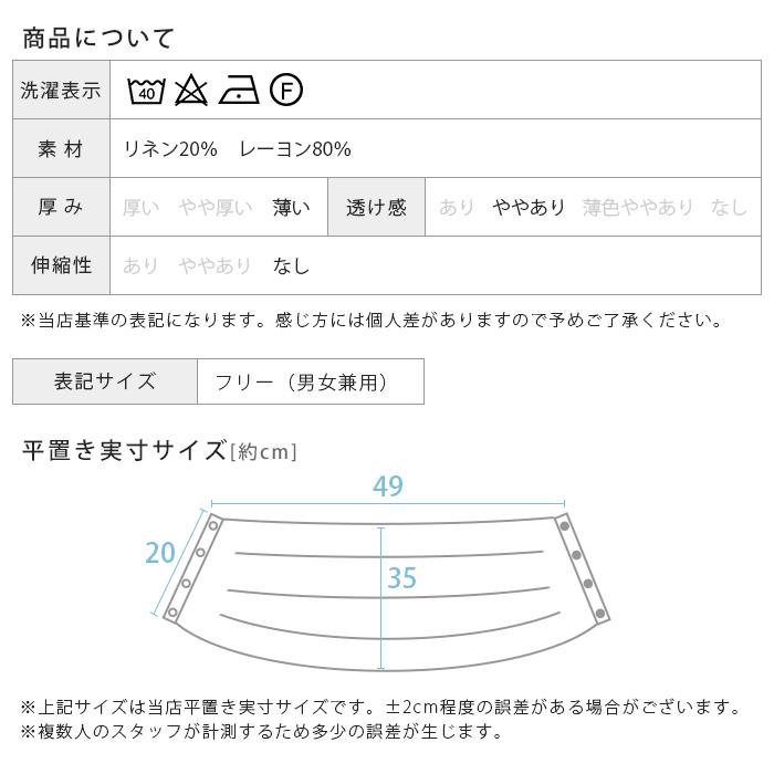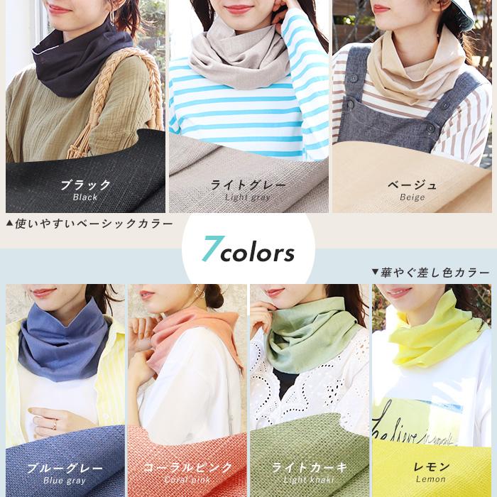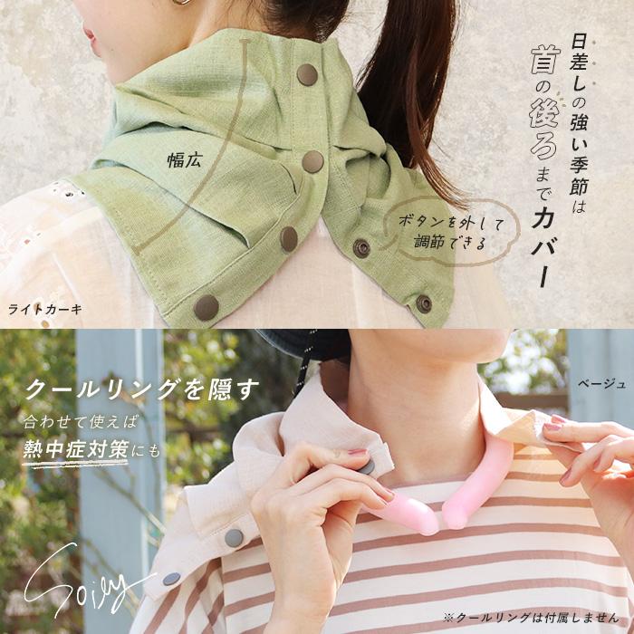 当店スタッフとお客様の声から生まれた オリジナルのリネン混ネックカバーです。生地と使いやすさにこだわりました!日焼け対策に幅広&長めで首の後ろまでしっかりカバーします。首元を隠すスカーフの代わりや、クールリングを隠すのにもおすすめです。スナップボタン付きなので、着脱も簡単で髪型も崩れないのも嬉しいポイント。リネン混で汗を素早く吸収していつでもサラサラ、通気性のいいレーヨン素材で暑い季節も快適にご着用いただけます。