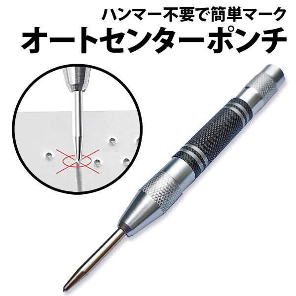 \50%offクーポン有/ 楽天1位 オートポンチ センターポンチ 1本 けがき作業 マーキング 穴あ オートセンターポンチけ 目印 打刻 ステンレス 木材 プラスチック 壁 床 スプリング 点ケガキ 押し付け 凹む DIY アルミ板 硬度 簡単 シンプル ハンマー不要 握りやすい ツール