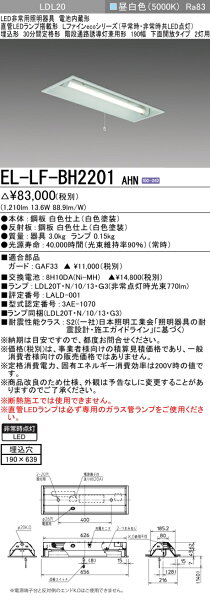 おすすめ品 三菱電機 EL-LF-BH2201 AHN LED非常用照明器具 階段通路誘導灯兼用形 埋込形 190幅 下面開放タイプ1灯用 …
