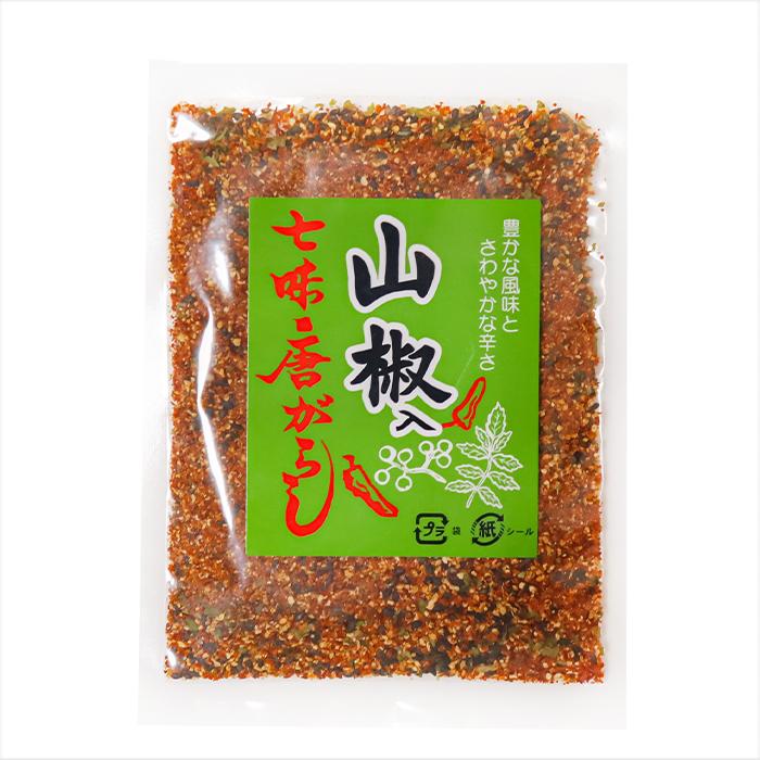 山椒の豊かな風味と唐辛子の辛みが合わさった「山椒入り七味唐がらし」です。