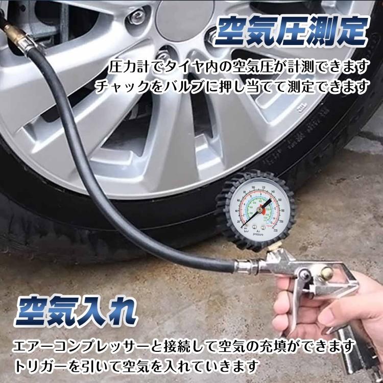 [エアゲージ 空気入れ エアーチェック コンプレッシャー ノズル タイヤゲージ 空気圧 測定 エア抜き 調整 点検 タイヤ交換 アナログ]