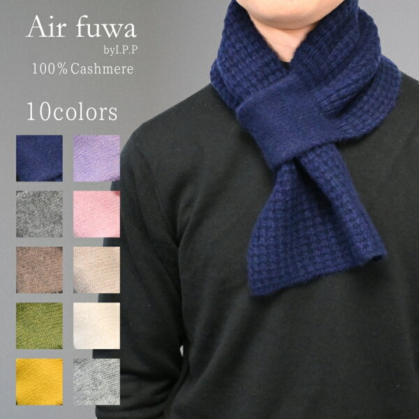 カシミヤ100% マフラー ニット 差し込みマフラー コンパクトマフラー 薄手 I.P.P アイピーピー エアふわ レディース …