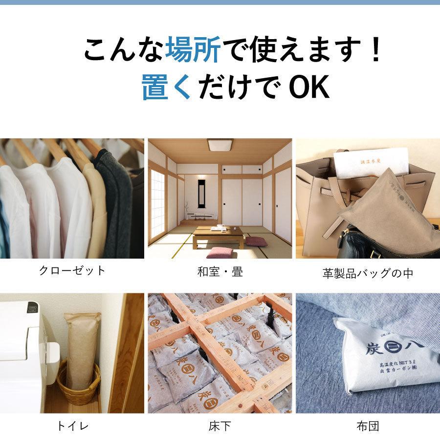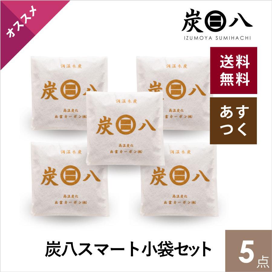 出雲屋炭八・調湿木炭 炭八スマート小袋セット5点セット内容・炭八スマート小袋0.4L /19m×19cm 厚み2.5cm 5点包装素材:不織布2重包装(ポリプロピレン)生産国:日本(島根県)【使いかた】お部屋のニオイ、湿気が気になるところへ置くだけ!半永久的に使えます。調湿・消臭機能に特化した木炭「炭八」で住宅の調湿を行うと、室内の体感温度が快適に保たれるだけでなく、年間を通じて湿度を人間の健康に適した40〜60%に近づけることができます。