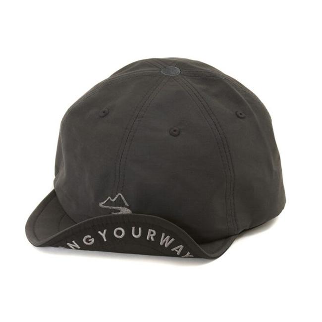 ロゴはフロント部に控えめに(従来の半分のサイズ)で刺繍を施し、風が吹いた際でも瞬時にサイズ調整可能な定番ストラップを採用。