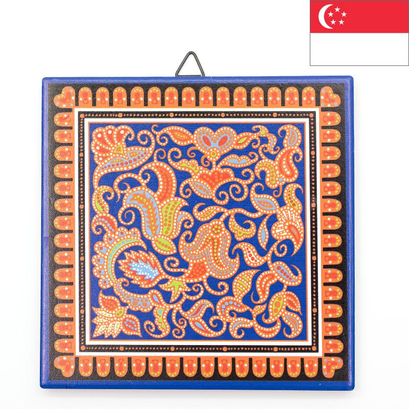 Batik バティック 鍋敷き 15cm なべしき フック付き SINGAPORE シンガポールみやげ シンガポール土産 陶器 コルク 海外おみやげ 輸入雑貨