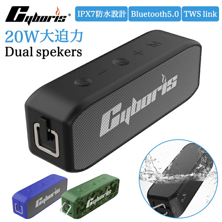 Cyboris | スピーカー bluetooth 防水 お風呂 高音質 小型 おしゃれ 重低音 車 ブルートゥース 5.0 会議 20W 大音量 重低音 高音質 ブルートゥーススピーカー 完全防水 IPX7 TWS 2台ペアリング アウトドア 大容量バッテリー ハンズフリー通話 Aux有線
