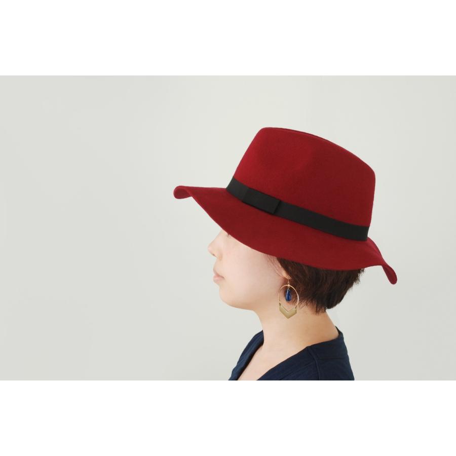 エレガントなウール中折れハット。シンプルなリボンがアクセントになります。本体はウール100%なので肌触りが良く高級感があります。つばは8cmありますので日差しもしっかり遮れます。カラーはブラック、ワイン色のボルドー、キャメルの3色です。【サイズ】頭まわり:約56〜57cm(サイズ調節可)つば:約8cm高さ:約10cm【素材】本体:ウール100%リボン:ポリエステル100%【カラー】ブラック / ボルドー / キャメル【生産国】中国製【備考】