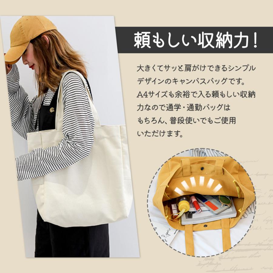 NEW COLOR入荷!!通勤・通学にも手軽に使えるA4サイズも入る大きめのトートバッグ【商品情報】・収納力抜群(A4サイズも入る)・3つ機能性のあるポケット・丈夫なキャンバス生地【商品詳細】・カラー(ホワイト、イエロー、ブラック、グリーン)NEW(ブラウン、レッド、ネイビー、カーキ、グレー)・素材:帆布・重さ:320g
