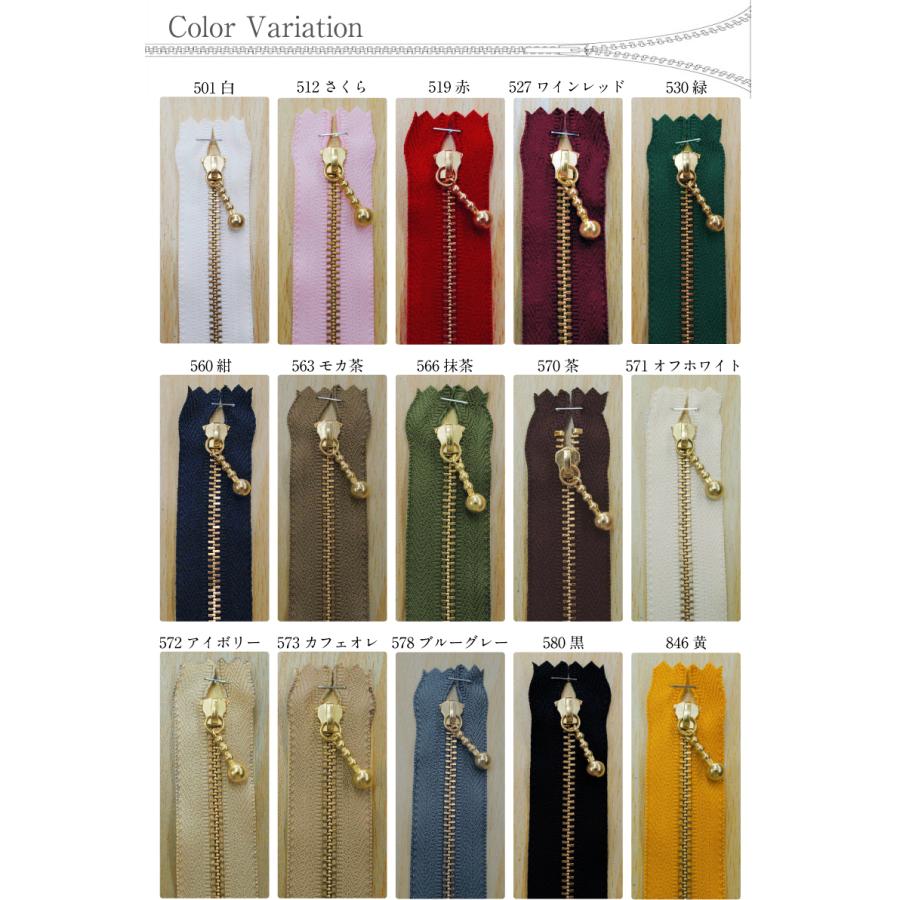 玉付ファスナー ゴールド 25cm 玉付き 生地 手芸 マカロン YKK