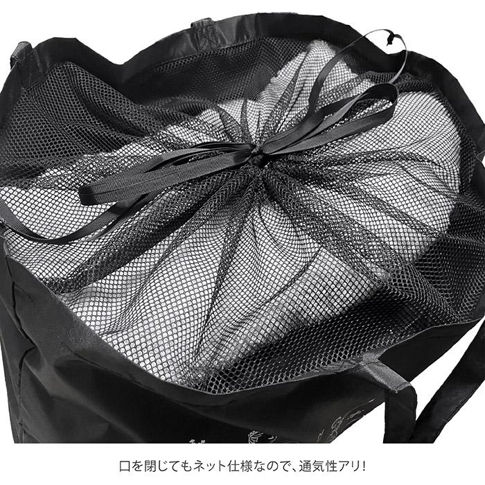 内側にメッシュの巾着口が付いているので、多少荷物がオーバーしても、口を絞ればこぼれ落ちる心配がありません。