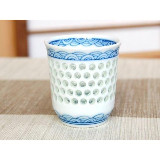 【サイズ】径5cm×高さ5.5cm ◇ 「水晶彫り」という高度な透かし技法で作られた逸品 ◇ おしゃれな日本酒用のぐい呑み ◇ 有田焼(日本製) ◇ 陶磁器製(陶器 または磁器) ◇ ギフト 贈答品にも対応いたします