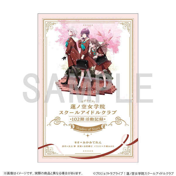 スマートフォンアプリ『Link!Like!ラブライブ!』シナリオ制作・みかみてれん氏による新規書き下ろし小説を収録。蓮ノ空女学院に入学したばかりの梢・綴理・慈の姿を描いた、後輩たちの知らない物語がここに!これは『蓮ノ大三角』誕生の軌跡──梢の誕生日パーティーの様子を描いた新規録り下ろしドラマCDも同梱!また、小説を収納する三方背BOX付き!■小説「102期活動記録 ~Shades of Stars~」(四六判型/本文192P予定)原作:矢立 肇原案:公野櫻子著者:みかみてれん【あらすじ】母親によって強制的に蓮ノ空女学院へ入学することになった藤島 慈。高校生活に絶望しかけていた彼女の目に、スクールアイドルクラブの部員を募集するポスターが飛び込んできた……と思ったら、背の小さい先輩にいきなり連行され!? 部室にいたのは乙宗 梢と夕霧綴理、後に慈とともに『蓮ノ大三角』と謳われることになる二人だった。最初は暇つぶし程度に考えていた慈だが、梢と綴理の“熱”に少しずつ当てられ、撫子祭でのライブ成功を目指して活動を開始する!※ページ数は変更になる場合がございます。※今後『Link!Like!ラブライブ!』に収録される場合がございます。■三方背BOXイラスト:千種みのり■ドラマCD『102期活動記録 ~Shades of Stars~ 第5.5話「初めてのハッピーバースデー」』(CD1枚)脚本:川岸殴魚出演:日野下花帆 楡井希実村野さやか 野中ここな乙宗 梢 花宮初奈夕霧綴理 佐々木琴子大沢瑠璃乃 菅 叶和藤島慈 月音こな百生吟子 櫻井陽菜徒町小鈴 葉山風花安養寺姫芽 来栖りん