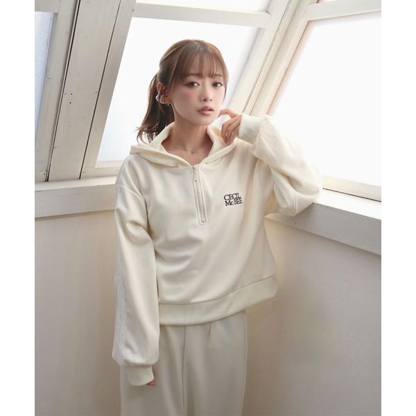 ジャージ 刺繍ロゴレーステープハーフジッププルオーバー レディース