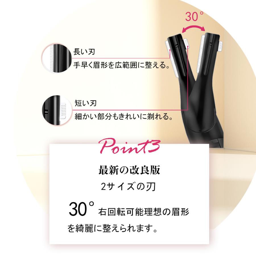 1.【30°回転設計・デュアルサイズ刃】 最新技術のヘッド部が30°回転する設計のため、肌に密着し、細かい部分もきれいに剃ることができます。 通常眉毛カッターの幅広刃に加え、眉毛を整える際に細かい形状を作るための小型刃を追加しました。4mm/6mmのロング/ショートコームが付属しており、簡単に形を整え、長さを調節して理想の眉に仕上げることができ、初心者でも簡単に使うことができます電気シェーバー。