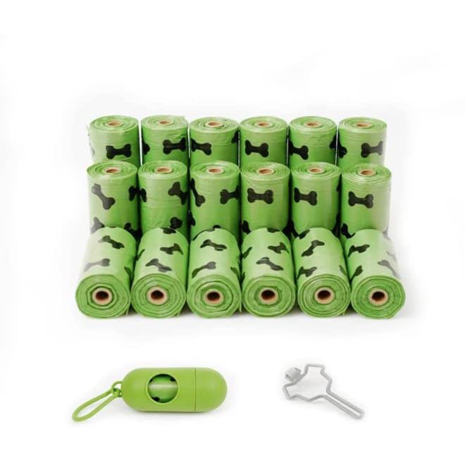 【 日本正規店 】 ペット用マナー袋 犬うんち袋 臭わない 丈夫 大容量 使い捨て お散歩 携帯便利 ディスペンサー ハンガー グリーン (18ロール 270枚)