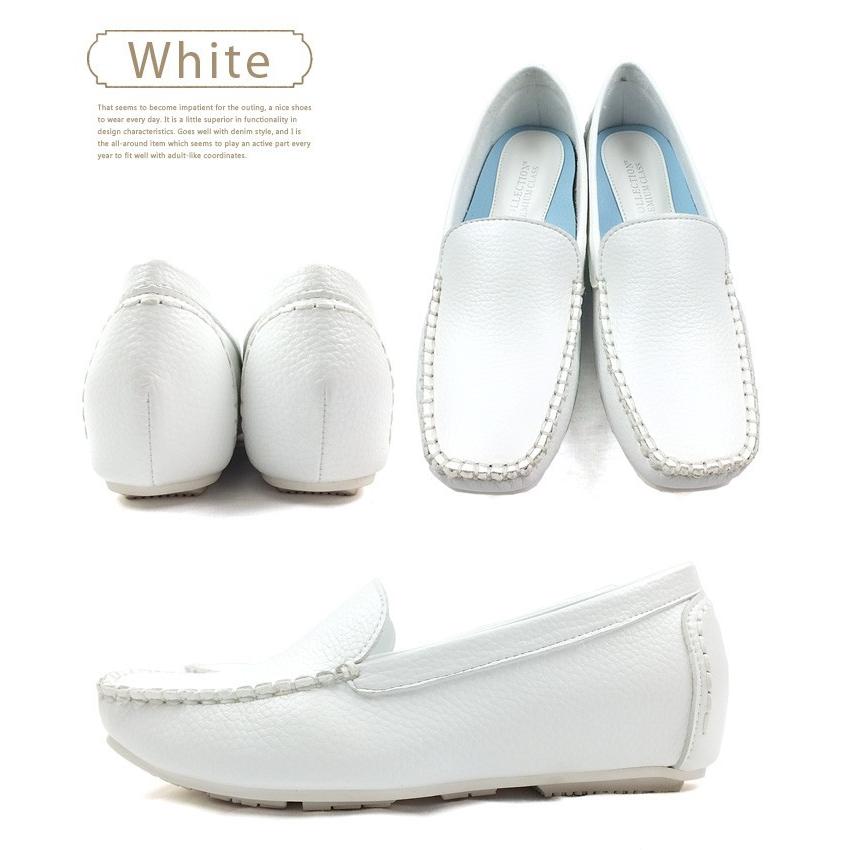 4)その他商品説明:ANNA COLLECTION-アンナコレクション- クッションインソールでふかふかなクセになる履き心地♪モカシンステッチのドライビングシューズ。隠れ美脚効果の2cmのインヒール入り!デッキシューズ カジュアルシューズ 白 レディース