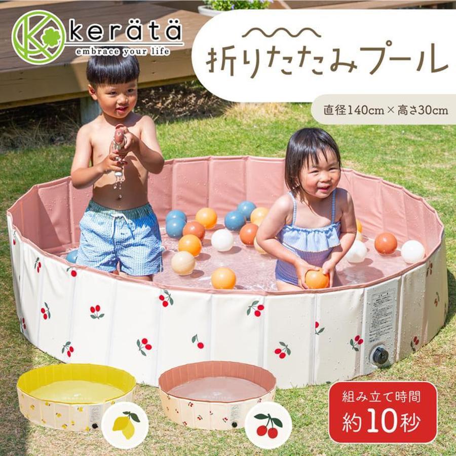 (ケラッタ) プール 折りたたみ 折り畳み 空気入れ不要 140×30cm 家庭用 子供用 丸型 円形 チェリー レモン イブル