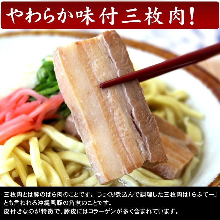 じっくり煮込んだ軟らかいお肉、おいしいかまぼこ、豚と鰹がしっかりと効いたそばダシ(かつお味)、島唐辛子を塩麹で発酵させた「さんさんす」も4食分も入っています。