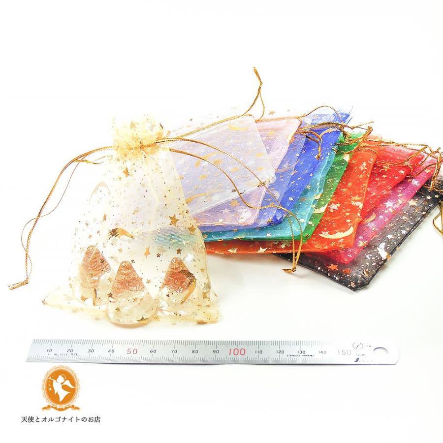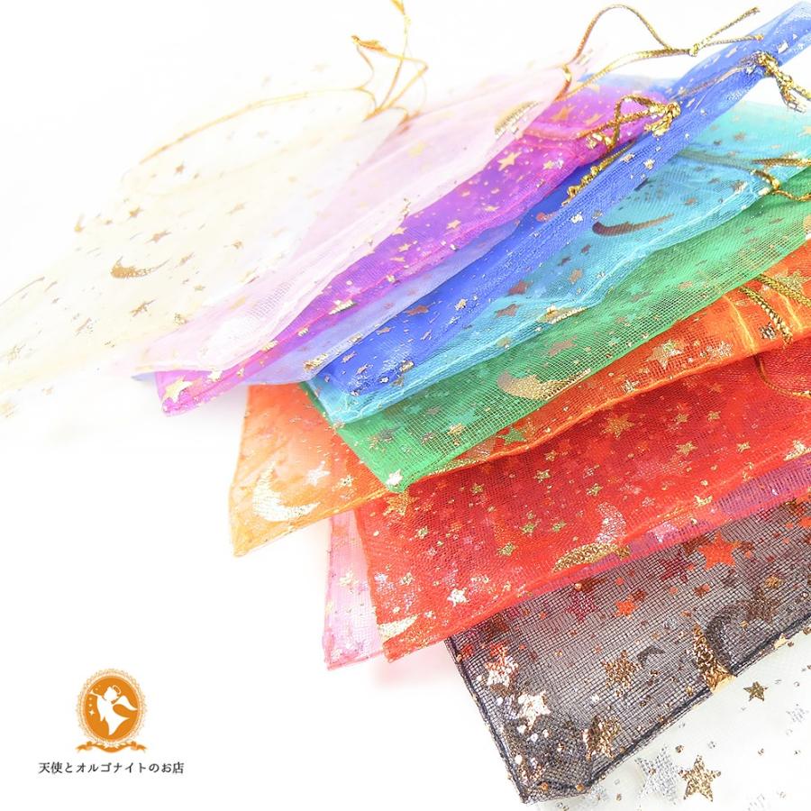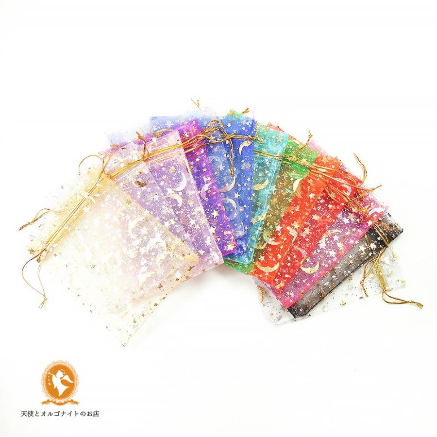 星と月のプリントが入ったオーガンジーの巾着袋です。