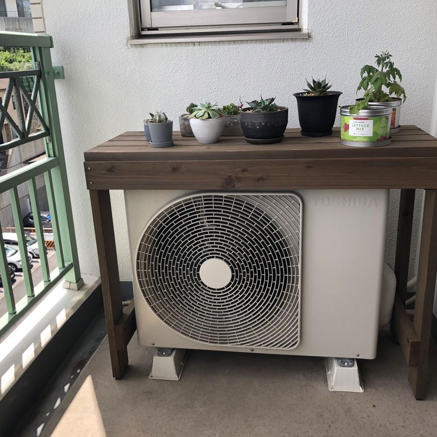 エアコン室外機上を有効活用するうれしい一品!室外機カバーを兼ねつつ花台として、飾り棚として使える機能美バツグンの花台です。