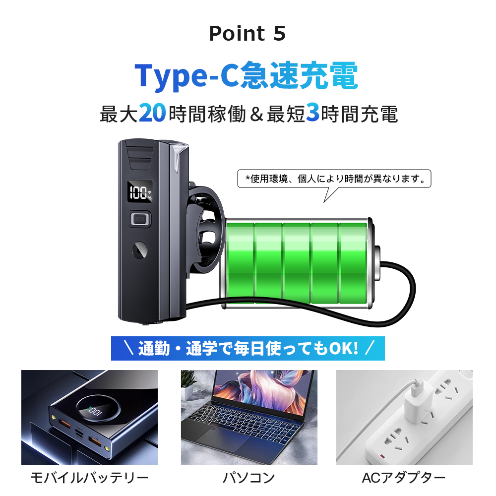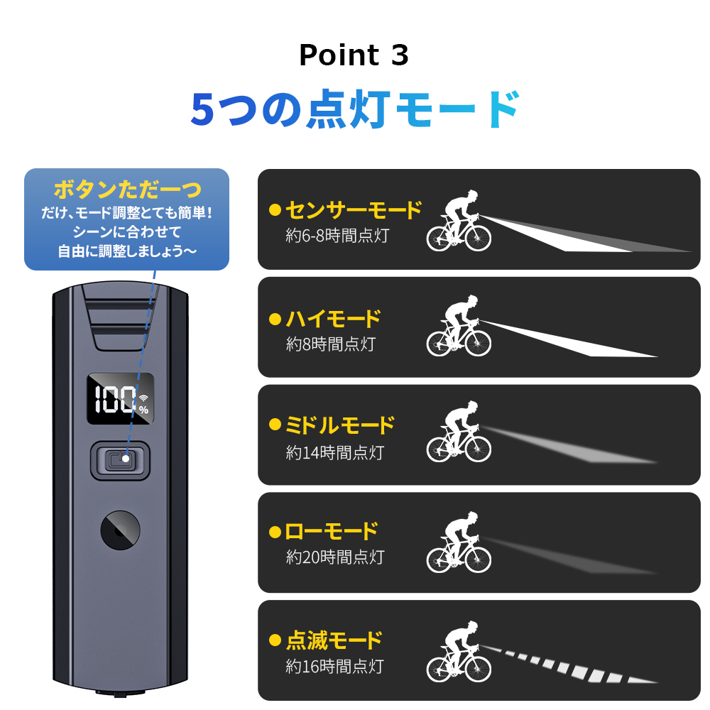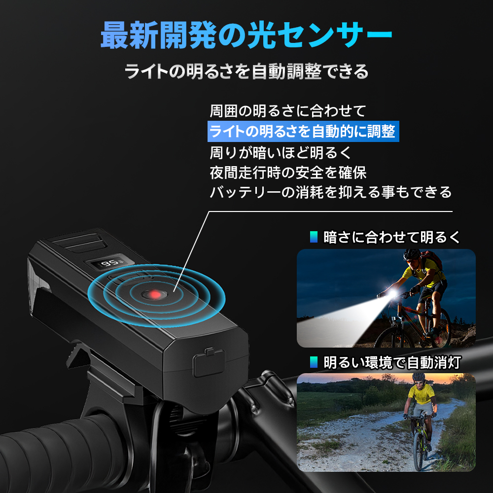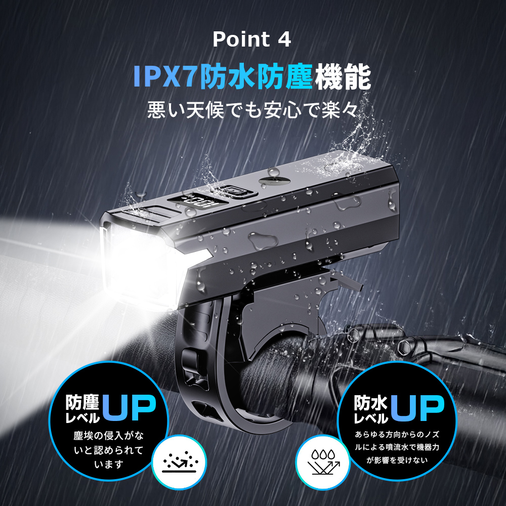 商品名:自転車ライト型番:CD-Q02(サイズ):102MM*33MM(材質):アルミニウム合金、ABS(バッテリー容量):2000mAh製品質量(本体のみ):本体約80gセット内容:本体x1、充電ケーブルx1、ブラゲットx1、日本語説明書(保証書)x1