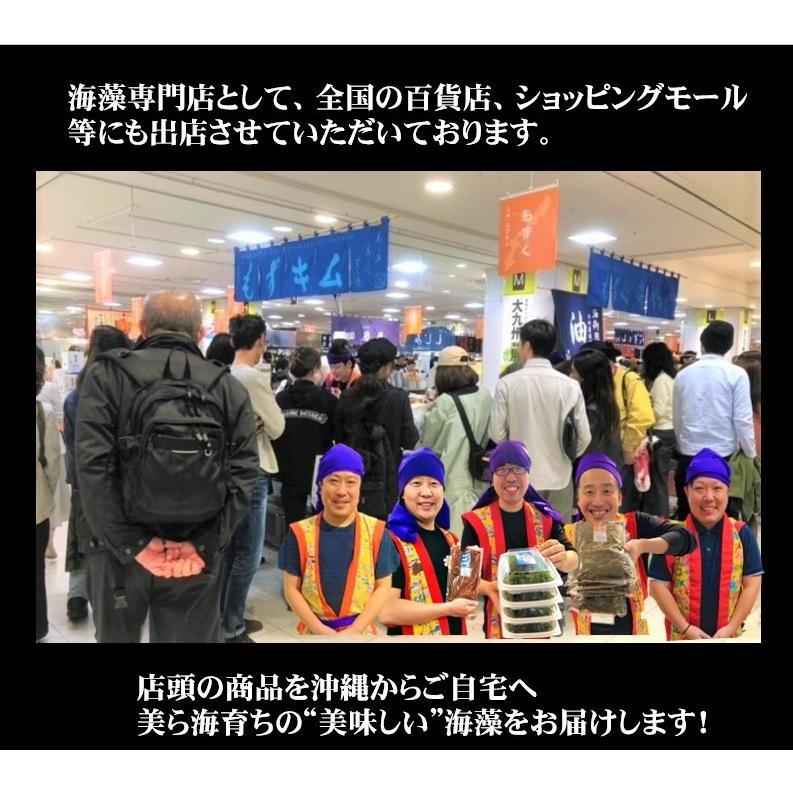 この宮古島産来間もずくは幹が太くて肉厚、この採れたてのおいしさを味わって頂くため、「生」にこだわりました。