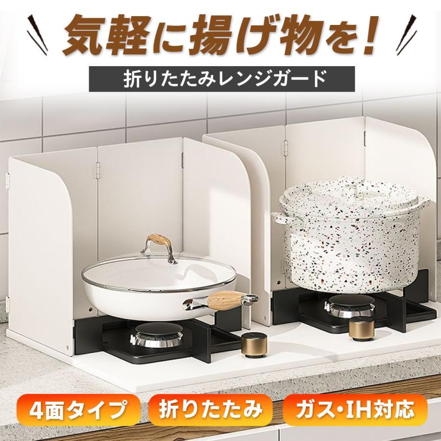 レンジガード 油はねガード 油ガード フッ素 4面 おしゃれ 油 コンパクト