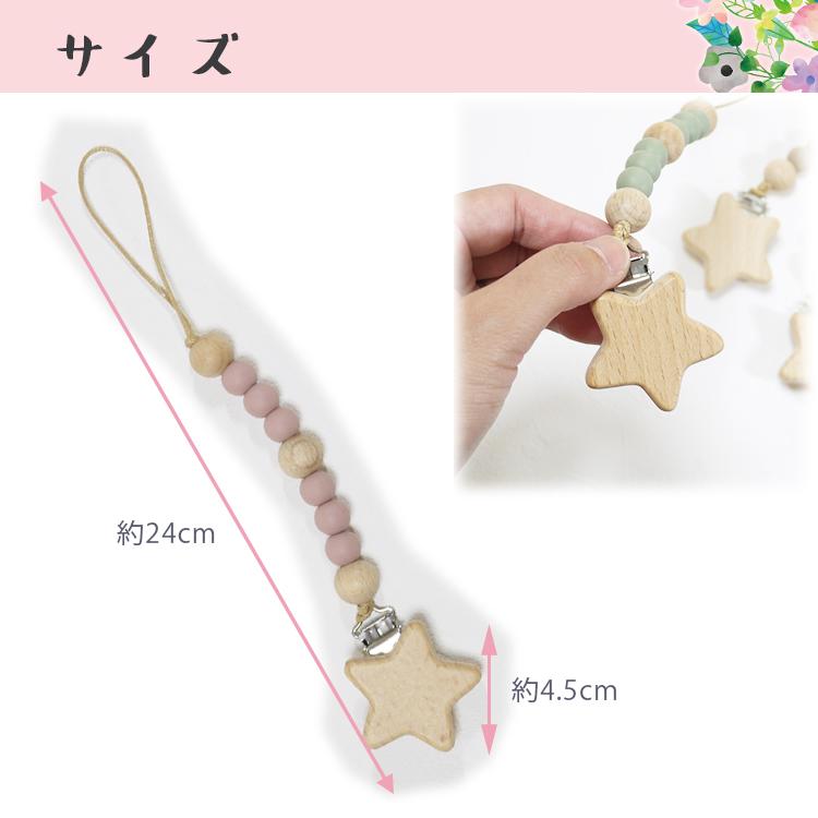 素材:シリコン(ボール・ビーズ)、天然木(クリップ・ビーズ)、鉄(クリップ部分)、ポリエステルひも