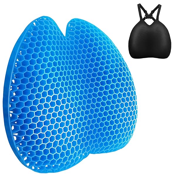 【Amazon.co.jp 限定】 チチロバ(TITIROBA) 背もたれ 通気性 クッション ランバーサポート ゲルクッション 腰枕 背中 腰 椅子 車 運転用 オフィス ゴムバンド付き 高さ調節可能 洗える カバー付き YDD-01 ブルー 40