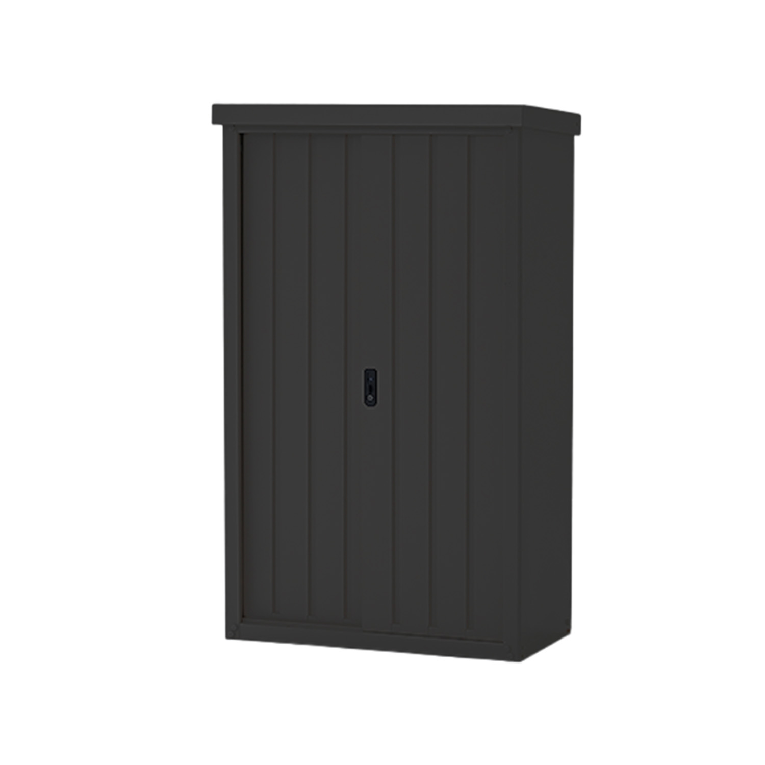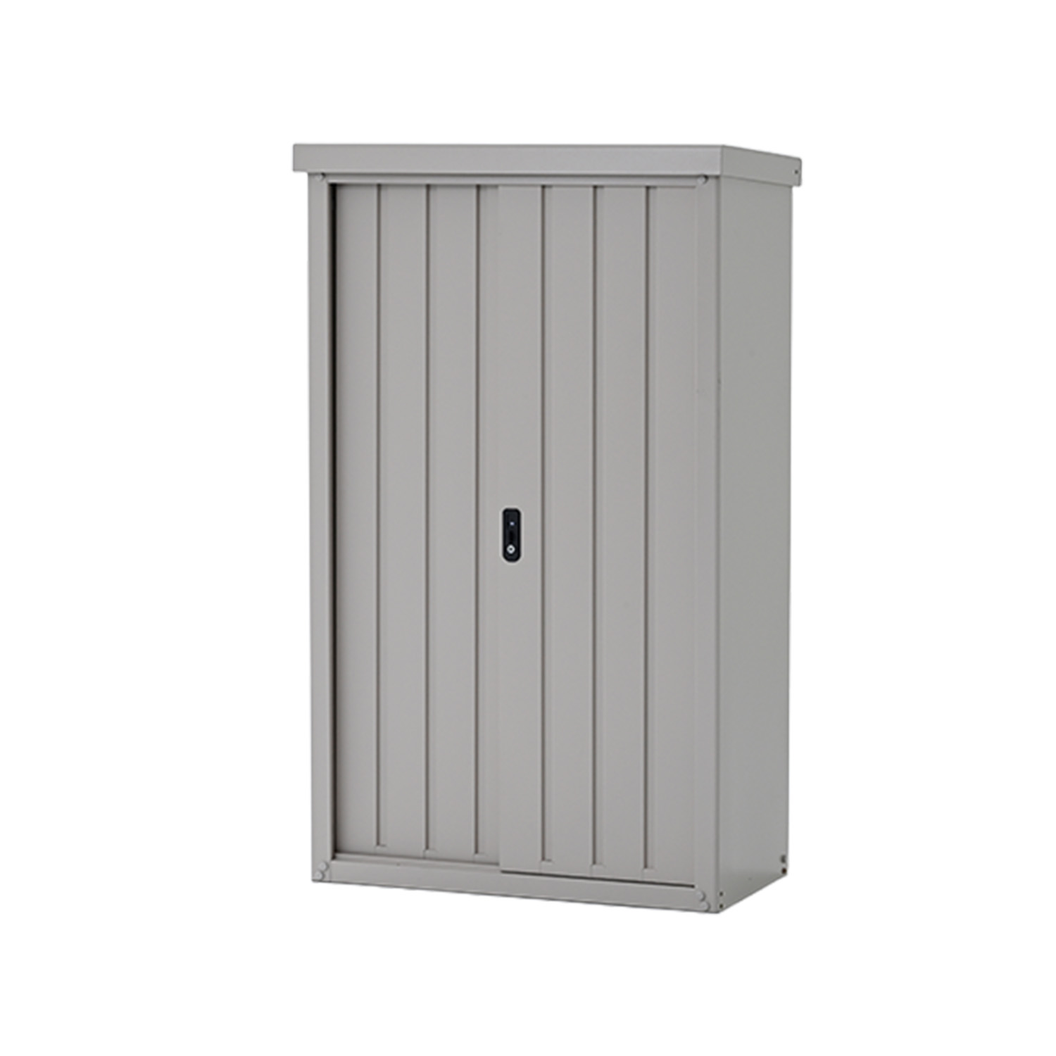 ●フロント扉に深めのスリットをデザインしたおしゃれなのスチール物置き