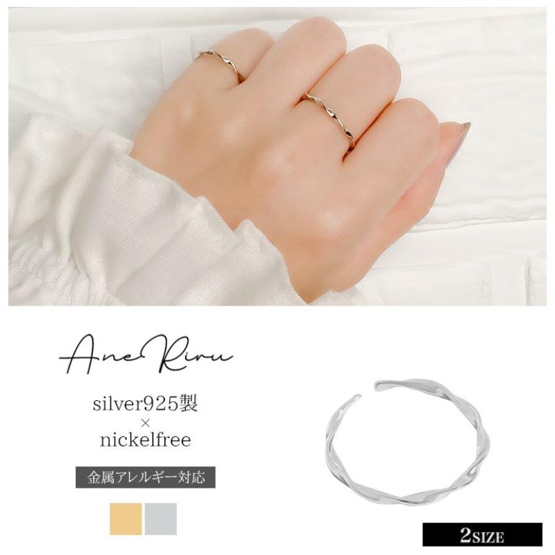 指輪 レディース 金属アレルギー対応 リング ツイスト ねじれ 重ね付け 細い フリーサイズ シンプル ニッケルフリー シンプル シルバー925 20代 30代 40代 50代