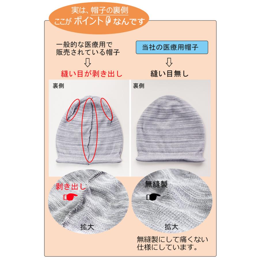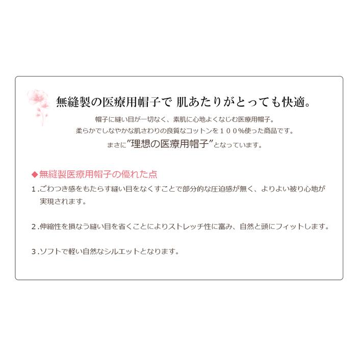 形状は、ふっくら仕様なのでお洒落を楽しめるデザインの医療用帽子です。