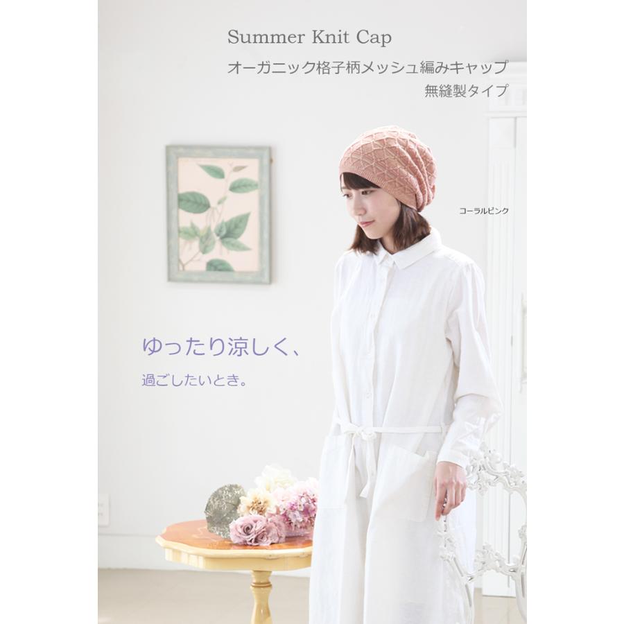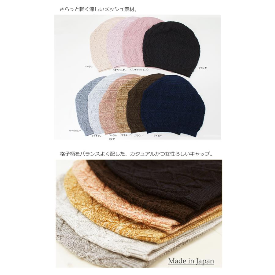 ★オーガニック格子柄メッシュ編みキャップ♪【春夏秋用】【無縫製タイプ】