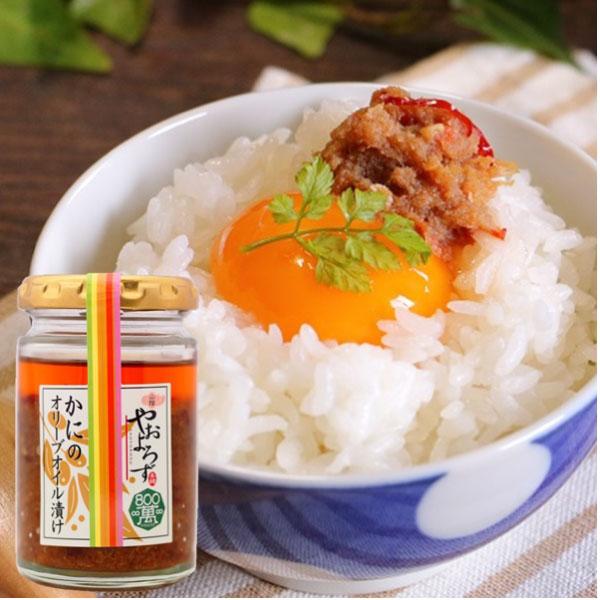 日本海でとれた紅ずわいがにをにんにく、鷹の爪とともに炒め、オリーブオイルに漬けました。パンやパスタ、クラッカー等にのせていただきますと、おいしくお召し上がりいただけます。商品サイズ:約5×5×9cm※納品書は発送時に商品へ同梱致しません。納品書をご希望の方はご注文入力の際、納品書希望とご記載ください。※レジ袋・紙袋は有料となります。袋をご希望の方は専用ページよりご注文下さい。
