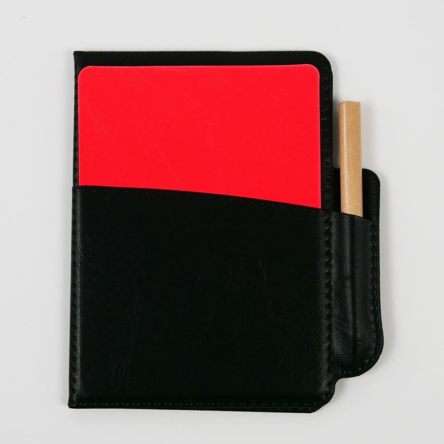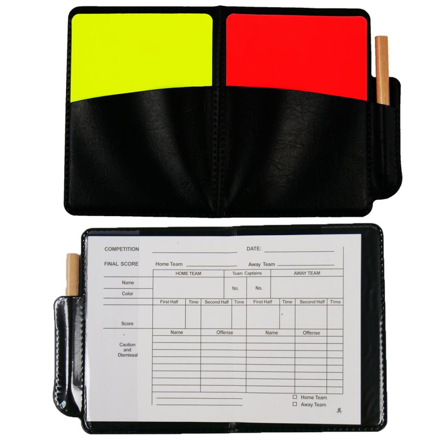 トスコイン、レッドカード、イエローカード、カードケース、スコア手帳のセットです。