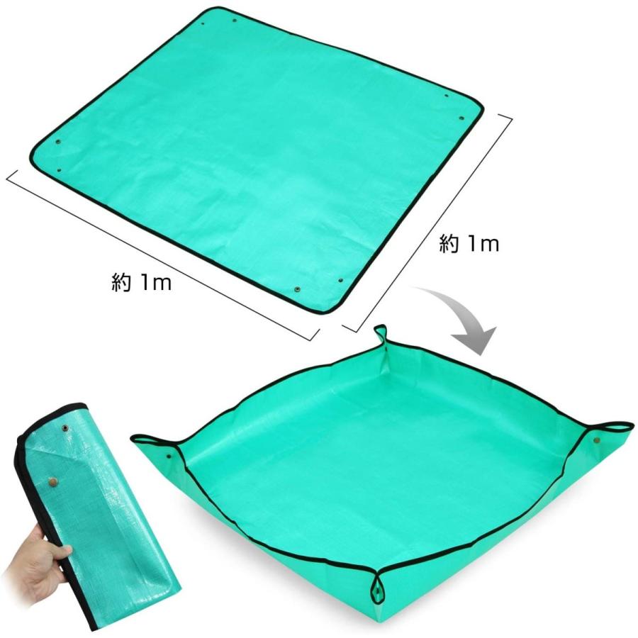 ※クリックポストにて発送予定(ポスト投函、追跡番号あり)■サイズ:約 100*100cm■カラー/グリーン、材質/ポリエチレン■防水塗装を施しているので水を通さず、汚れてもサッと拭き取ることができお手入れもカンタン。■リビングルームやバルコニーなどの場所で植物の栽培、土壌の交換 便利なシート。■四隅のスナップボタンを留めることでトレイ状になり、用土のこぼれ落ちや、飛び散りを防止。■使わない時、折りたたむことができ、軽量で持ち運びもラクラクです。