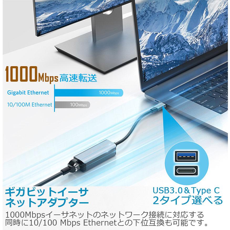 【1000Mbps高速ギガビット】有線LAN変換アダプタUSB3.0&TypeCは最大1000Mbpsまでの高速回線速度になり、安定また超高速のインターネット通信が維持されています。仕事の効率がより良くなり、オンラインゲームも遅延無くなります。