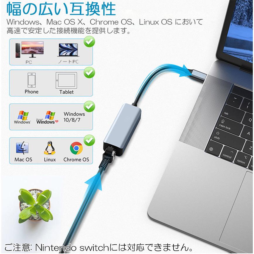 【多くのType-C機器に適用】有線LAN変換アダプターの互換性が高くて、MacBookPro2018/2017、MacBook、iPadPro2018、DellXPS13/15、SurfaceBook2、Pixelbook、Chromebook、などtype-c&USB端子を搭載したデバイス向けです。Windows、Mac OS、Chrome OS、Linux OS において高速で安定した接続機能を提供します。(ご注意:Nintendoswitchには対応できません。予めご了承ください。)