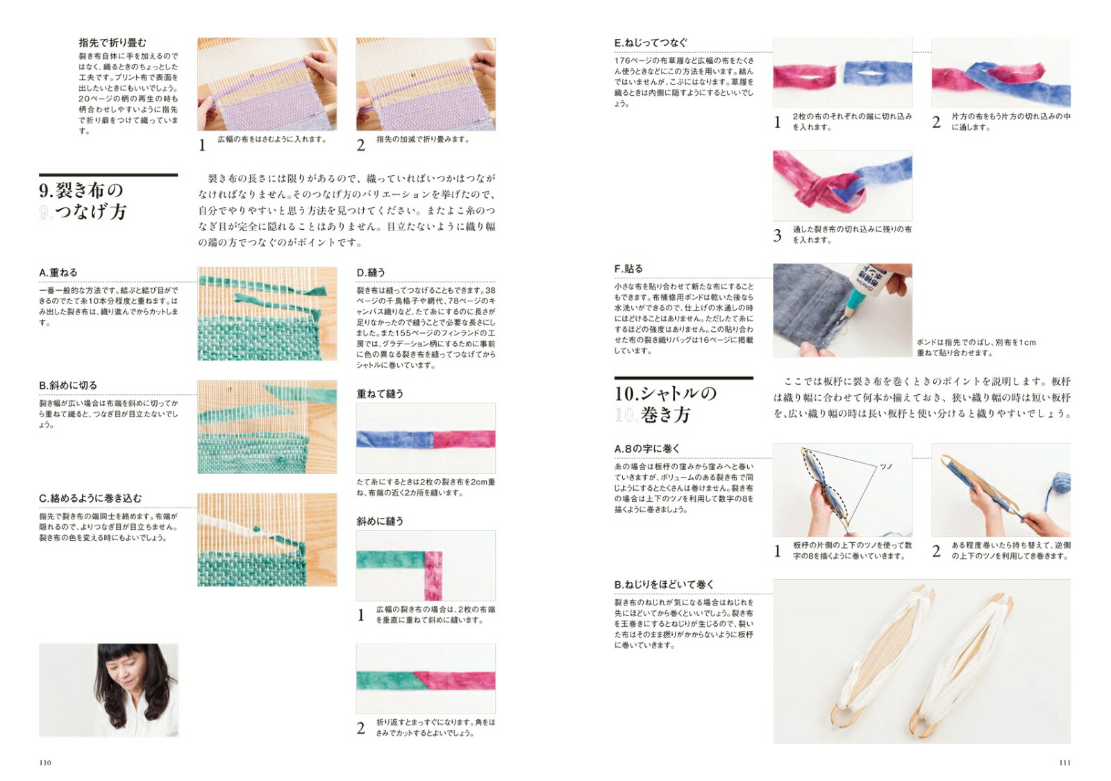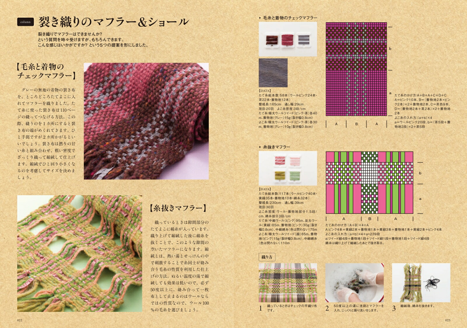 裂き織りによく見られがちな織りの技法とそのコツを中心に美しく仕上げるコツを網羅。さらに裂き織りのフィンランドや日本各地の歴史や特徴なども紹介した、裂き織りについての決定版的な書籍です。裂き織りに使う技法としては、普通の柄布の裂き織り、綾織りと杉綾、網代斜紋、たて引き返し織り・よこ引き返し織り、千鳥格子・網代、畝織り・リップス織り、キャンバス織り・ななこ織り、横の浮き織り・縦の浮き織り、開口の浮き織り・スペース織り、模紗織りパターン・へちま織り、模紗織りパターン、よろけ縞、ノット織り・ループ織り、はさみ織り・綴れ、開口のはさみ織り、はさみ織りのツイストパターン、もじり織り・コインレース、六角もじり、斜線織り、たて吉野織り・よこ吉野織り、二重織り、オーバーショット、昼夜織り、クラックル織り、メガネ織り、トルコ朱子、ワッフル織りなどを掲載しています。また、一着の着物(銘仙・浴衣・お召)からどれくらいの布が織れるかなど、読者にとって興味深い内容を取り入れたり、裂き織り紀行と題し、佐渡島裂き織り会館や東北南部裂き織り、こぎん刺しと菱刺し、フィンランド・アホネン工房などへの取材も行っています。■目次裂き織りのベスト特別寄稿 裂織の魅力(京都染織学芸舎主宰 富山弘基)Chapter 1 一枚の布からできる裂き織りChapter 2 裂き織りの技法(前編)Chapter 3 裂き織りの技法(後編)Chapter 4 裂き織りのコツChapter 5 裂き織り紀行Chapter 6 裂き織り小物**********************