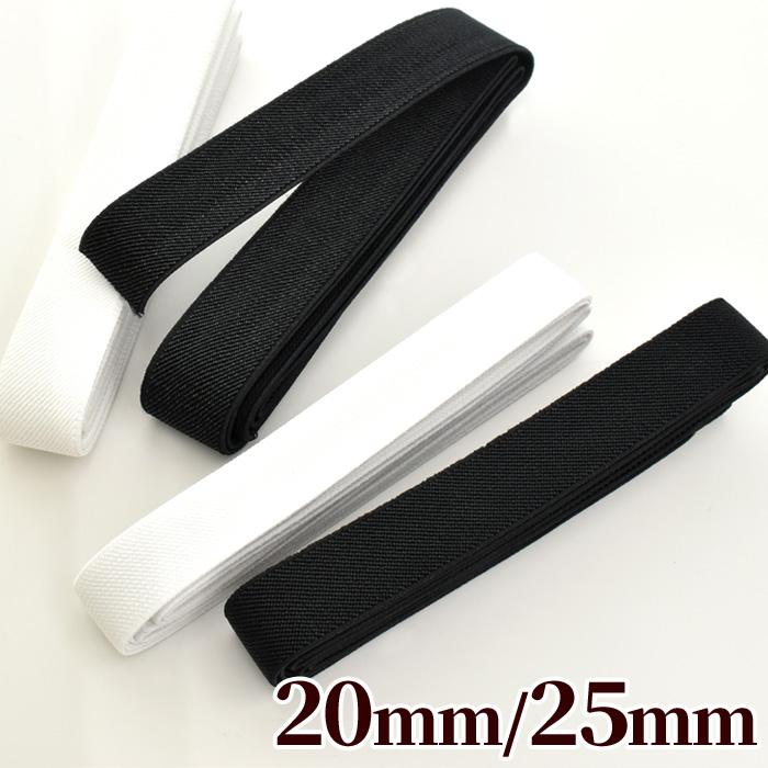 平ゴム20mm/25mm幅全2色 #ゆうパケ16点可20mm幅が約150cm、25mm幅が約140cmのベーシックな幅広ゴムです。スカートやパンツのウエストゴムはもちろん、お弁当箱を止めるゴムや、ファイルや文房具を止めるゴムにもお使い頂けます。
