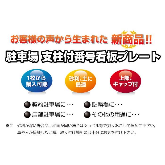 爆買 駐車場 柱付き 杭付き 支柱付き プレート 看板支柱サイズ:H約950mmプレートサイズ:H165×W250ミリ プレート材質:3mmアルミ複合板支柱材質:アルミ30ミリ 角柱 t1.5ミリ 支柱を埋め込むことが可能な場所にご利用いただけます。商品画像は参考見本です。ご希望の数字で製作が可能です。※文字色は黒のみです