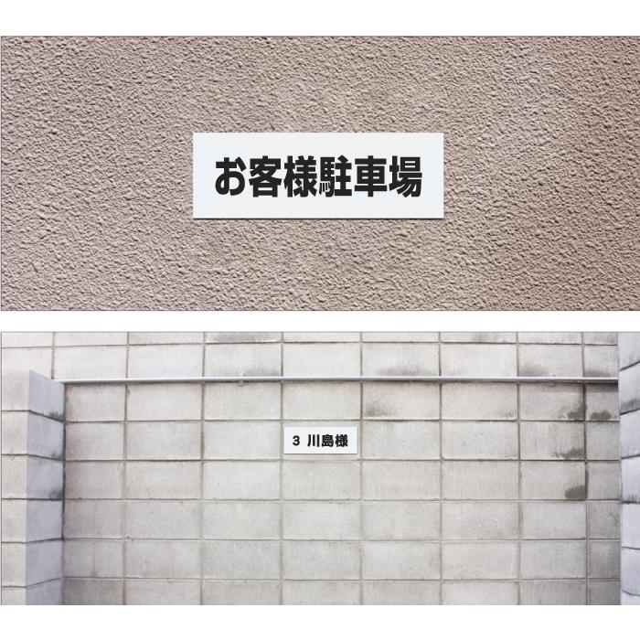 爆買駐車場オーナー様必見です!取付穴加工無料!文字入れ無料!ご希望の内容で製作致します!駐車場看板,プレートならお任せ下さい!激安販売中♪サイズ:H100×W300ミリ材質:3mmアルミ複合板:白板に黒文字裏面:強力両面テープ加工付き駐車場の車止め、フェンスなどにご利用下さい。商品画像は参考見本です。ご希望の内容で製作が可能です。その他大口は都度ご相談ください。